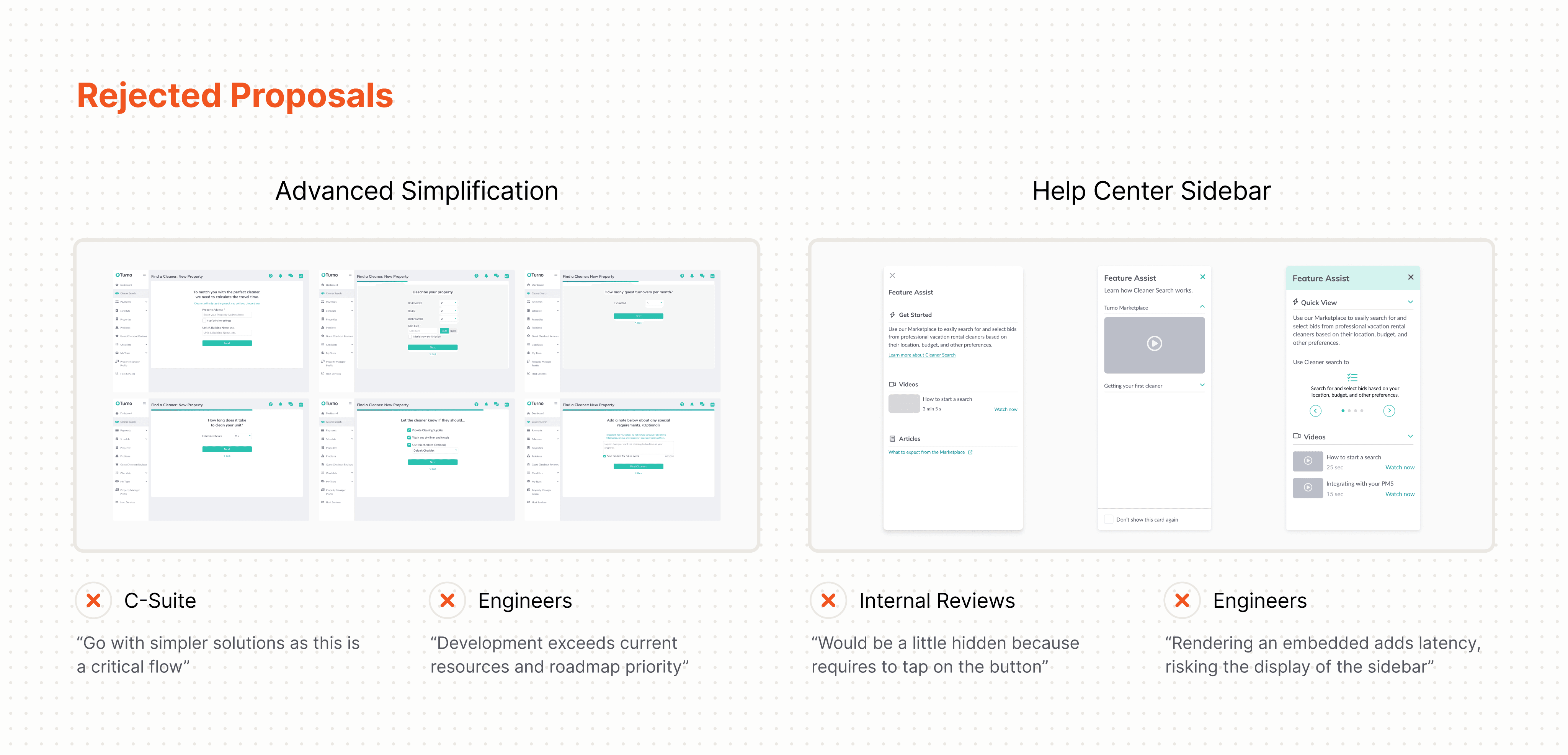 After consulting C-Suite and Engineering, we rejected other higher-risk proposals, prioritizing feasibility and performance over solutions that could cause delays.